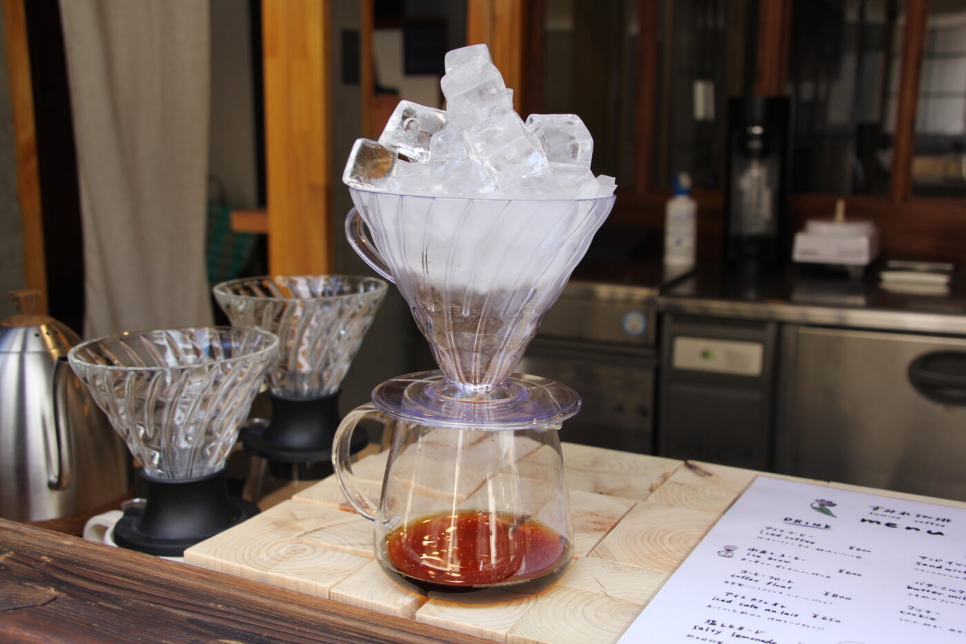 お店ではハンドドリップで抽出しているアイスコーヒーや、苦みやカフェインが控えめな氷出しコーヒーなどを提供しています。