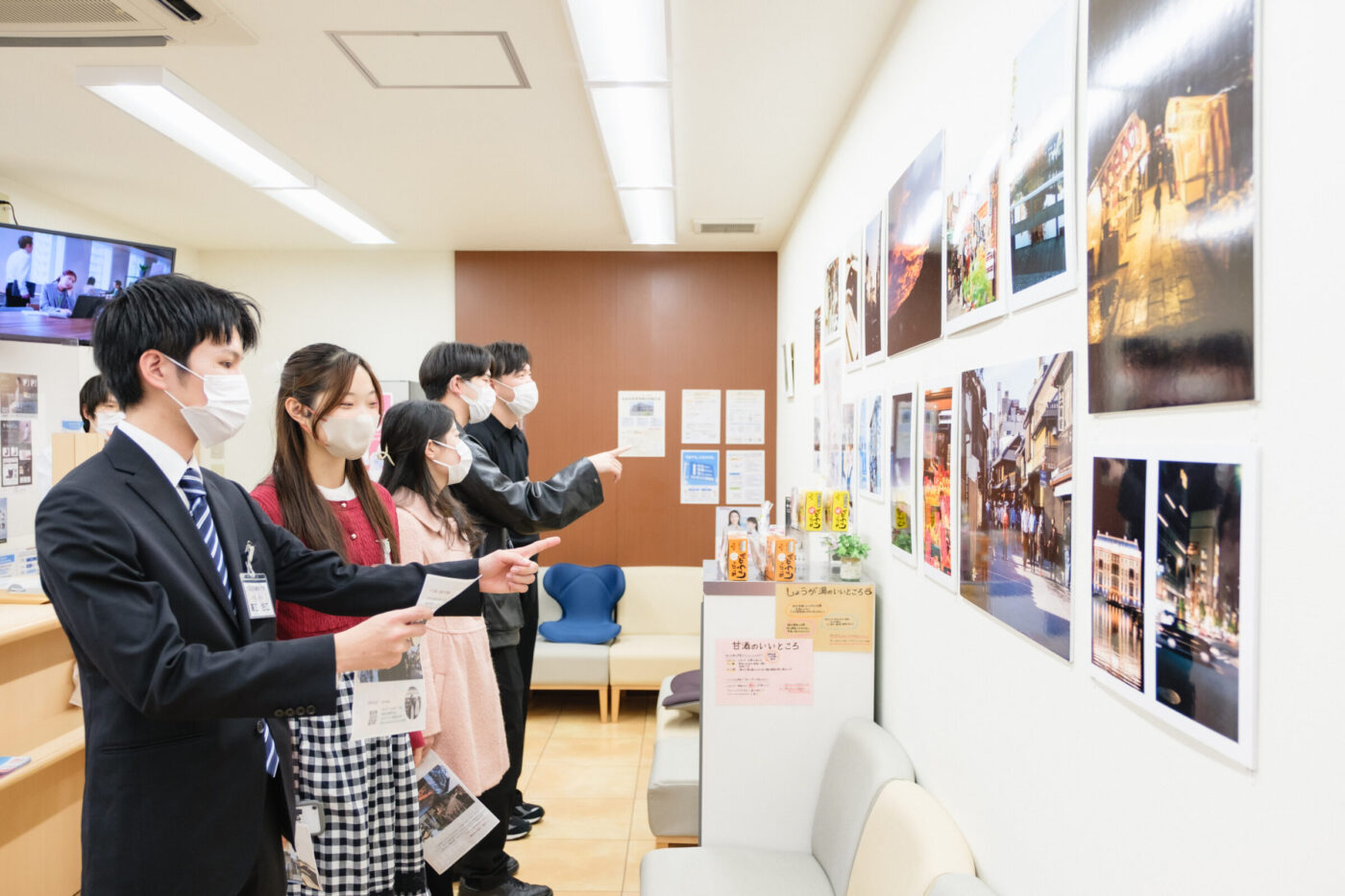 さらに、「roots」から徒歩5分ほどの場所にある峰山ゆう薬局へ。この薬局内に飾られている写真は、実はもともと「roots」で展示されていた地元の高校生の作品。峰山ゆう薬局のオープン時に、「roots」からの巡回展として設置され、スタッフや患者さんから好評だったため、ゆう薬局が買い取って常設展示にしたそうです。そんな一連のエピソードから、地域の若者の主体的な活動を、ゆう薬局と「roots」が共に応援していることがよくわかります。
