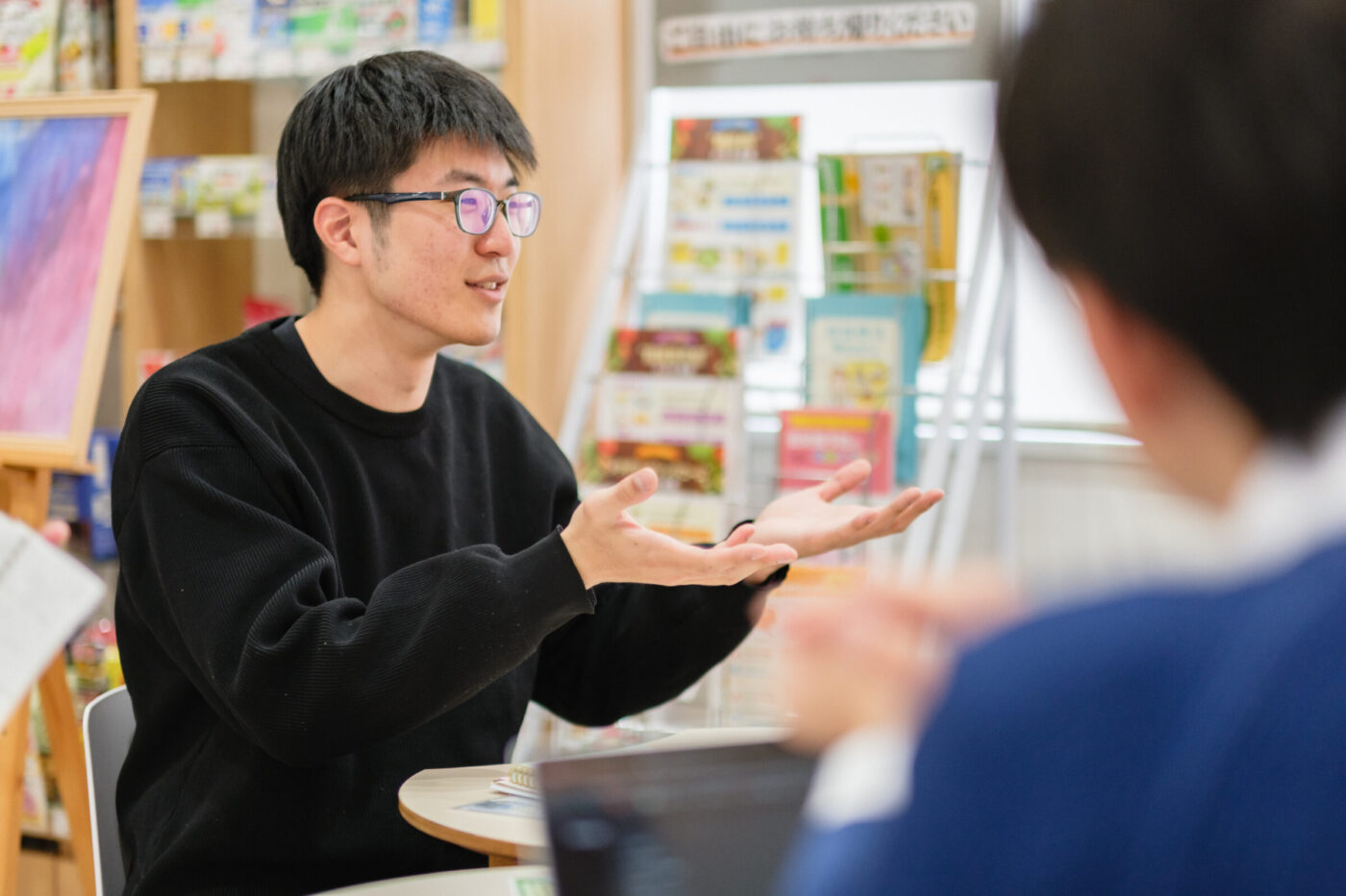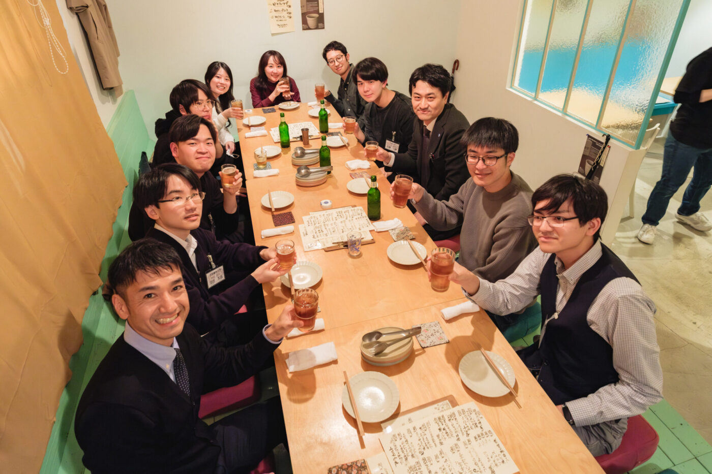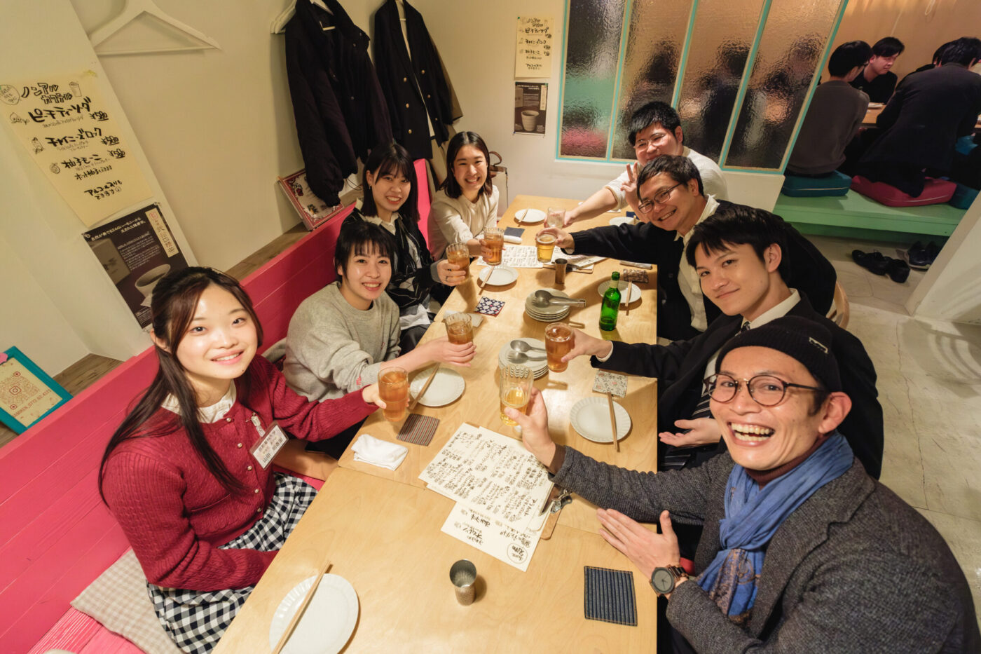1日目の最後には、舞鶴チームと丹後チームが合流し、交流会を開催。丹後エリアで働くゆう薬局のメンバーも加わり、現役薬剤師と未来の薬剤師がざっくばらんに語り合う楽しいひとときを過ごしました。