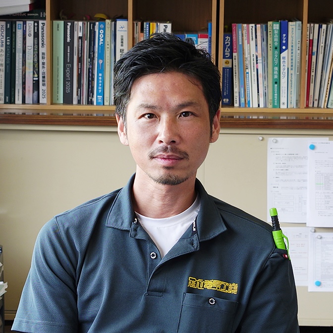 大分県出身。福岡工業専門学校インテリアデザイン工学科卒。足立電気工業(株)代表取締役。寺社仏閣の電気工事を主に手がけ、理念「文化を守り、未来へつなぐ」を胸に取り組んでいます。