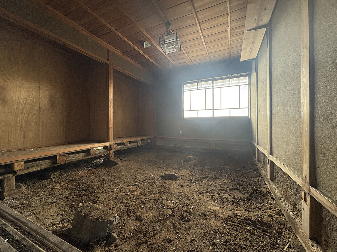 建物は母屋が92.56㎡の平家建て。 現状は空家で床は剥がされています。家をまずは修繕するところから必要にはなってきますが、趣のある扉や障子が残っているため、想像が膨らむ魅力的な古民家です。