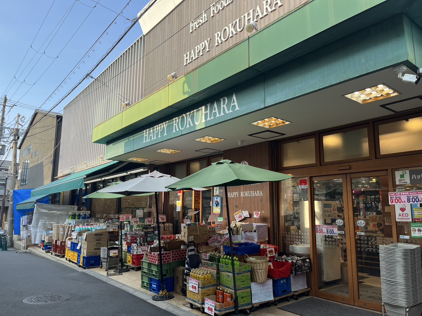 京阪本線清水五条駅から徒歩6分と好立地ながら、徒歩圏内にはローカルさにほっこりするスーパー「ハッピー六原」や個人商店に銭湯、小さな公園もあるので、近隣に住むおじいちゃんおばあちゃんが井戸端会議をおこなう姿も。古き良き昭和の雰囲気が漂い、なんとも言えない懐かしさを感じるまちです。