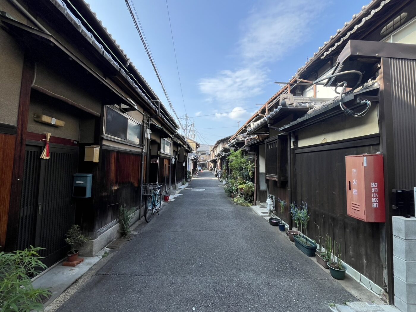 ココナガヤのある昭和小路は、五条通りから北に入ってすぐ、20数件の連棟町家が連なり、趣ある一帯。路地の中には移住してきた方もおられ、ファミリー世帯や料理教室をされている方や陶芸家、2拠点生活先として利用中の方や写真家など、地元の方だけではなく、多種多様な方が暮らしを営んでいます。