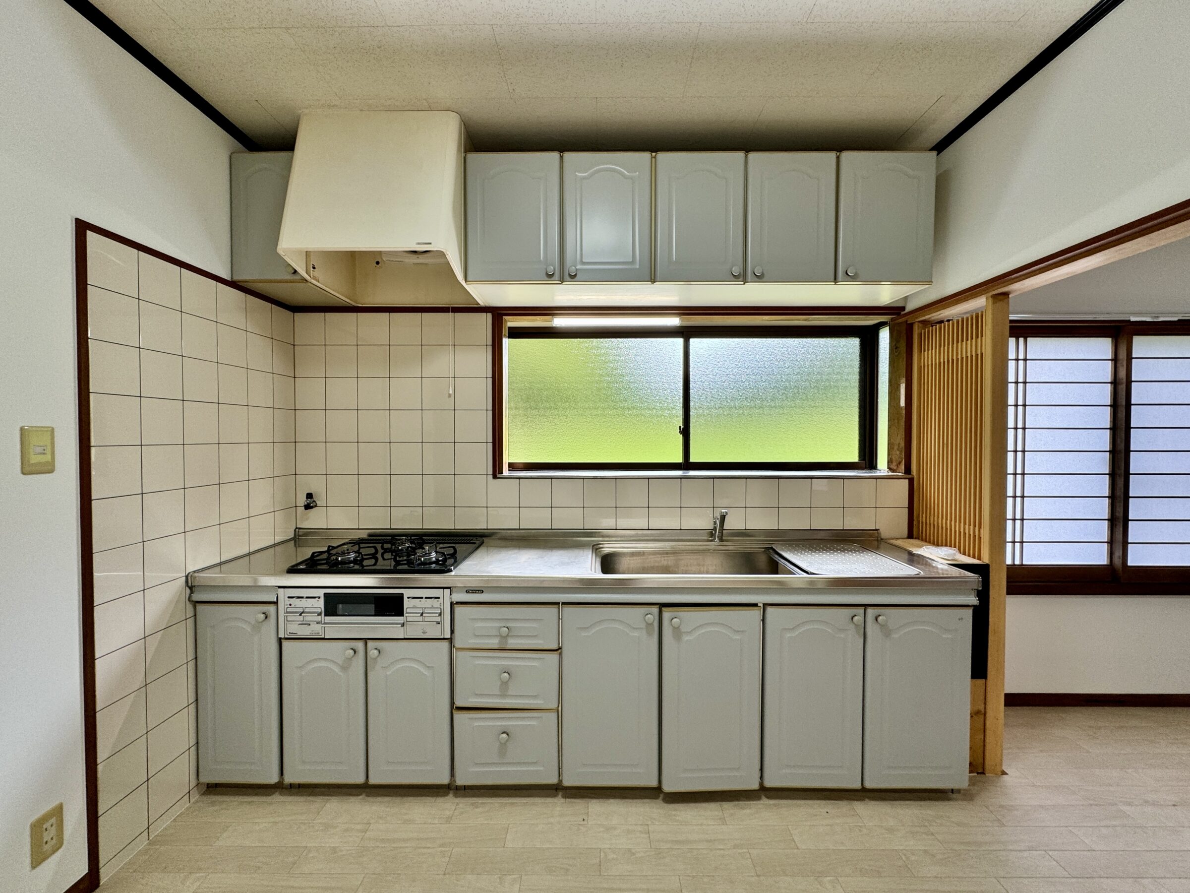 キッチンはガスコンロが3口あり、こちらも綺麗に使っていただけます。