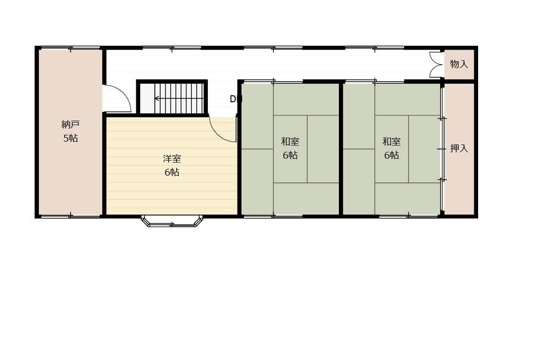 2階へは、玄関から入ってすぐ、キッチンの裏手の階段から上がることができます。