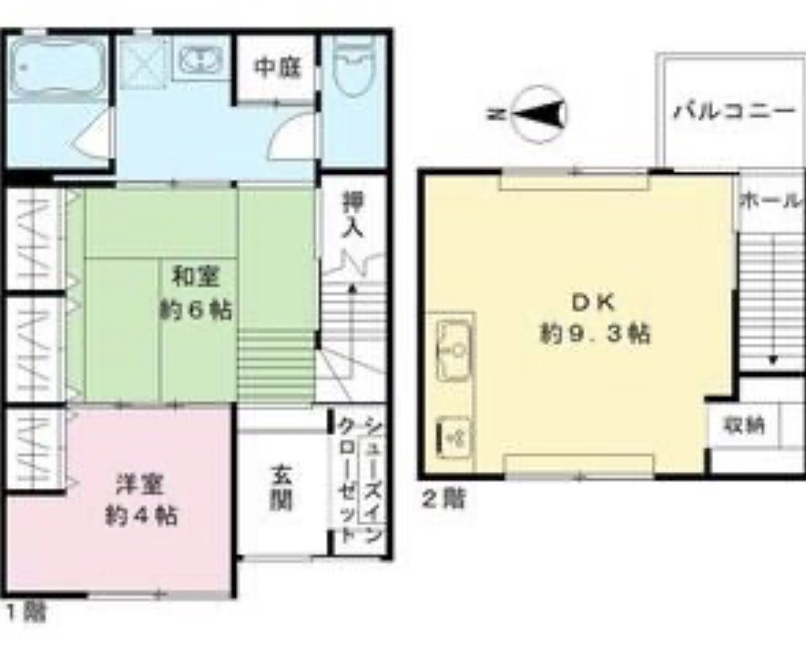 | 規模 | 2階建て1戸(2DK [ 洋4 x 和6 x DK9.3 x DK9.3 ]) |
