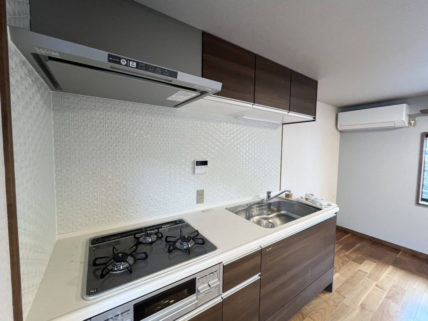 | 設備 | システムキッチン3口ガスコンロ、独立洗面台、シャワートイレ、追い炊き機能付きバス、 エアコン1基、シューズインクローゼット |