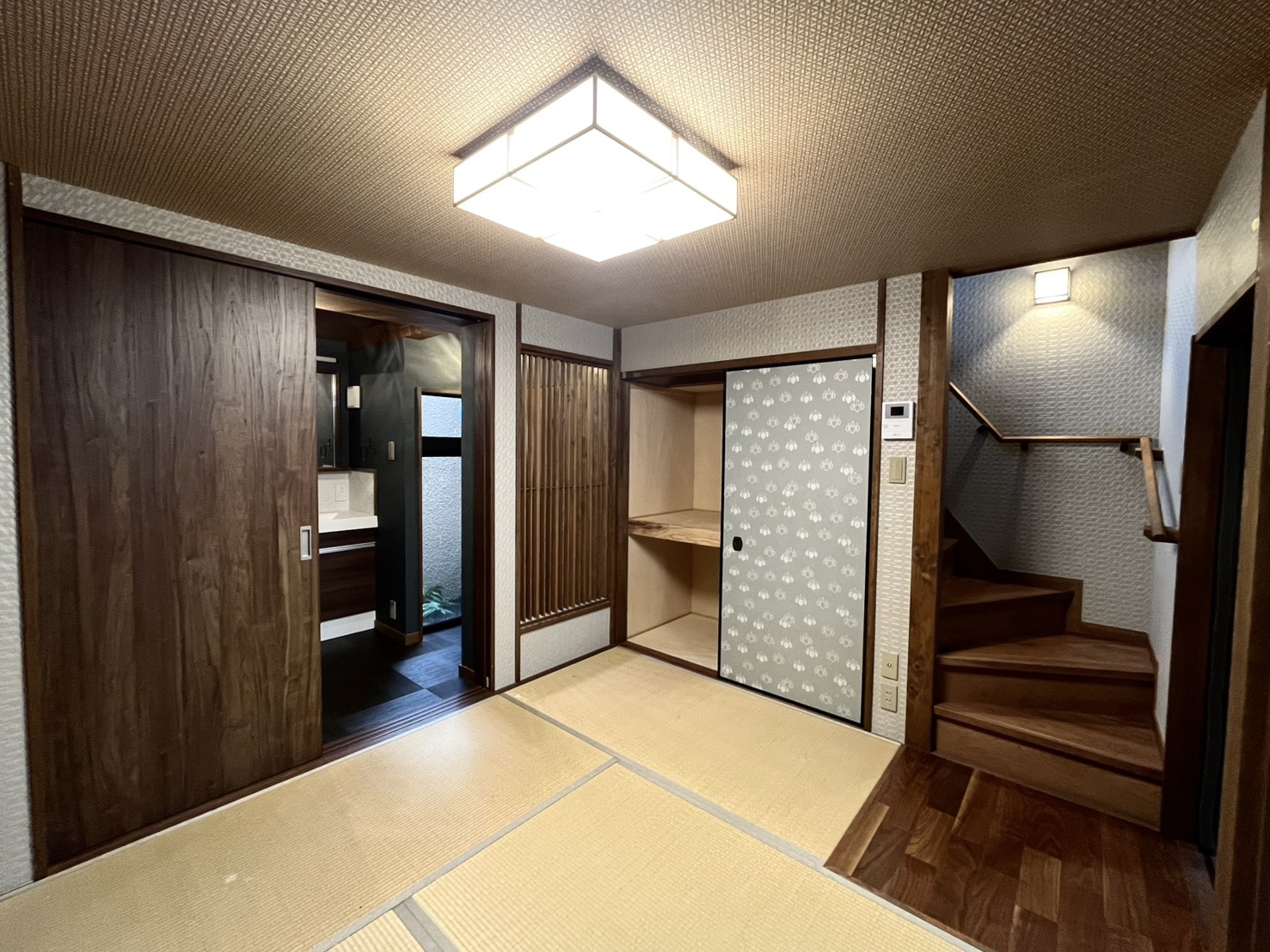 内装は各所に収納スペースが設けられており、現代の暮らしにフィットする和モダンにリノベーション済み。