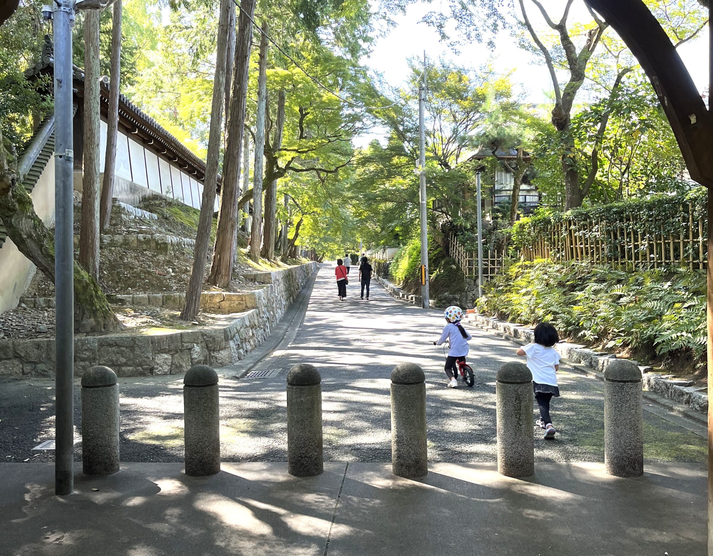 少し歩けば東福寺、そして25にもなる塔頭寺院、紅葉の色鮮やかな木のトンネル……。このような環境で子どもの自転車練習をしていたりするのがこの界隈のリアルな子育てイメージになります。