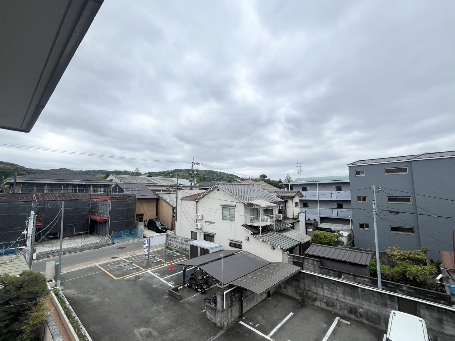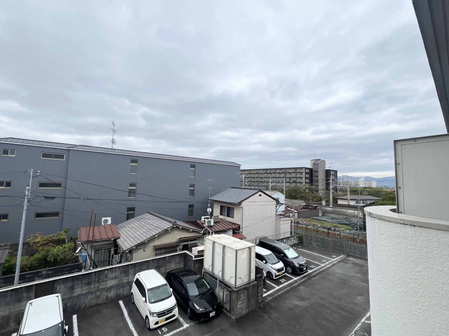 撮影時はあいにくの曇り空でしたが、南向きベランダのため、日当たりも良さそう。ベランダから東福寺の木々と伏見稲荷方面に続く山が見えます。