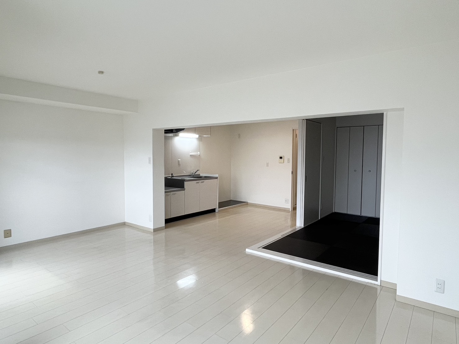 室内はご覧の通りシンプルなホワイトベースにリフォーム済みですので、お好みのインテリアや家具・カーテン次第でがらっと印象が変わりそうですね。(事務所利用も相談可)