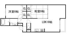 間取りは2LDK。リビングが16帖とスペースにゆとりがあり、寝室となる個室もあるので2~3名のファミリー向けの物件かと思います。