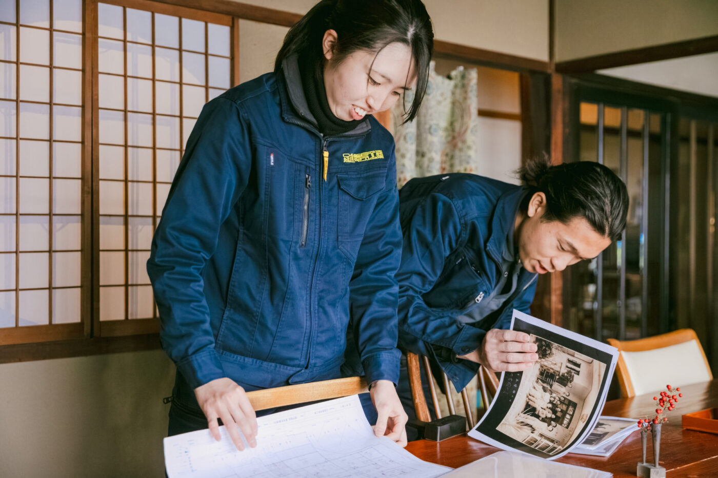 古い建物に興味があって入社したので、現場に入るのはすごくワクワクしました。土木工事などの力仕事は大変でしたが、すべてが初めてで、新鮮で面白くて。一日があっという間に過ぎていきました。家に帰るとあちこち筋肉痛ですけど(笑)。