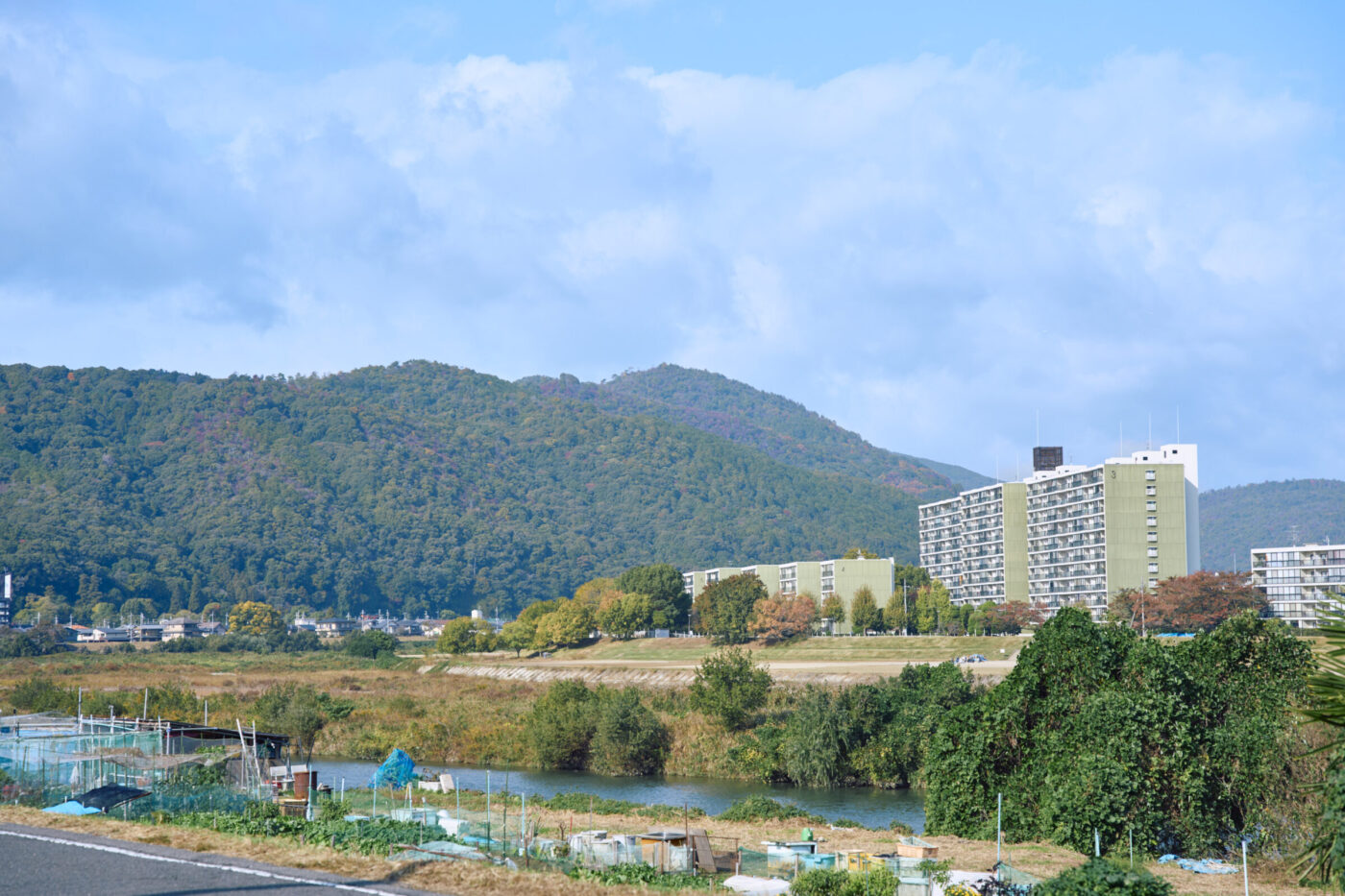 目の前をゆったりと流れる桂川。その向こうに広がる西山連峰。のどかな風景の中を歩いていると、「いちに!いちに!」と子どもたちの元気いっぱいのかけ声が聞こえてきました。