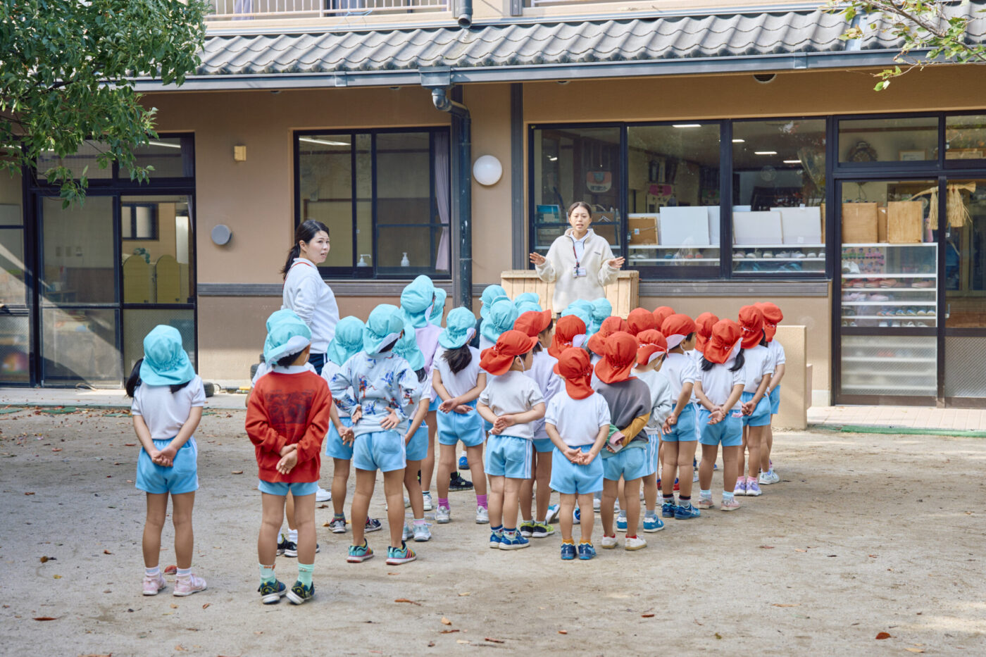 初めはどうしても、みんなから遅れてしまった子をつい手伝いたくなったり、全員が揃うのをずっと待ってしまったり。こちらが手を出しすぎるのは良くないと思いつつ、ちょうどいいさじ加減をつかむのが難しかったですね。でも、困ったときは先輩に相談してアドバイスをもらい、少しずつ感覚をつかんでいくことができました。一緒のクラスを担当する先生はもちろん、他のクラスの先生たちも気にかけてくれるのでありがたいですね。