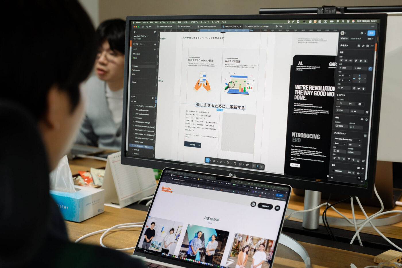 自分で調べたり、藤原さんに教えてもらったりしながらプログラミングを学んでいき、今では「楽しい」と駄場中さん。藤原さんも「叩き上げだよね。初心者だったのに、今はすっかり優秀です」と太鼓判を押します。
